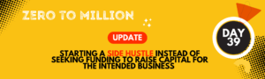 As a result, I am not going to seek funding because I lack evidence. What will I do? I will start a side hustle, a business that requires low capital to enter and has the potential to generate the profits we need to achieve our target. Our current goal is to generate R20,000, although our ultimate aim is to build a company that generates a million. However, we must take small steps to reach this goal, so we will start by generating R20,000.